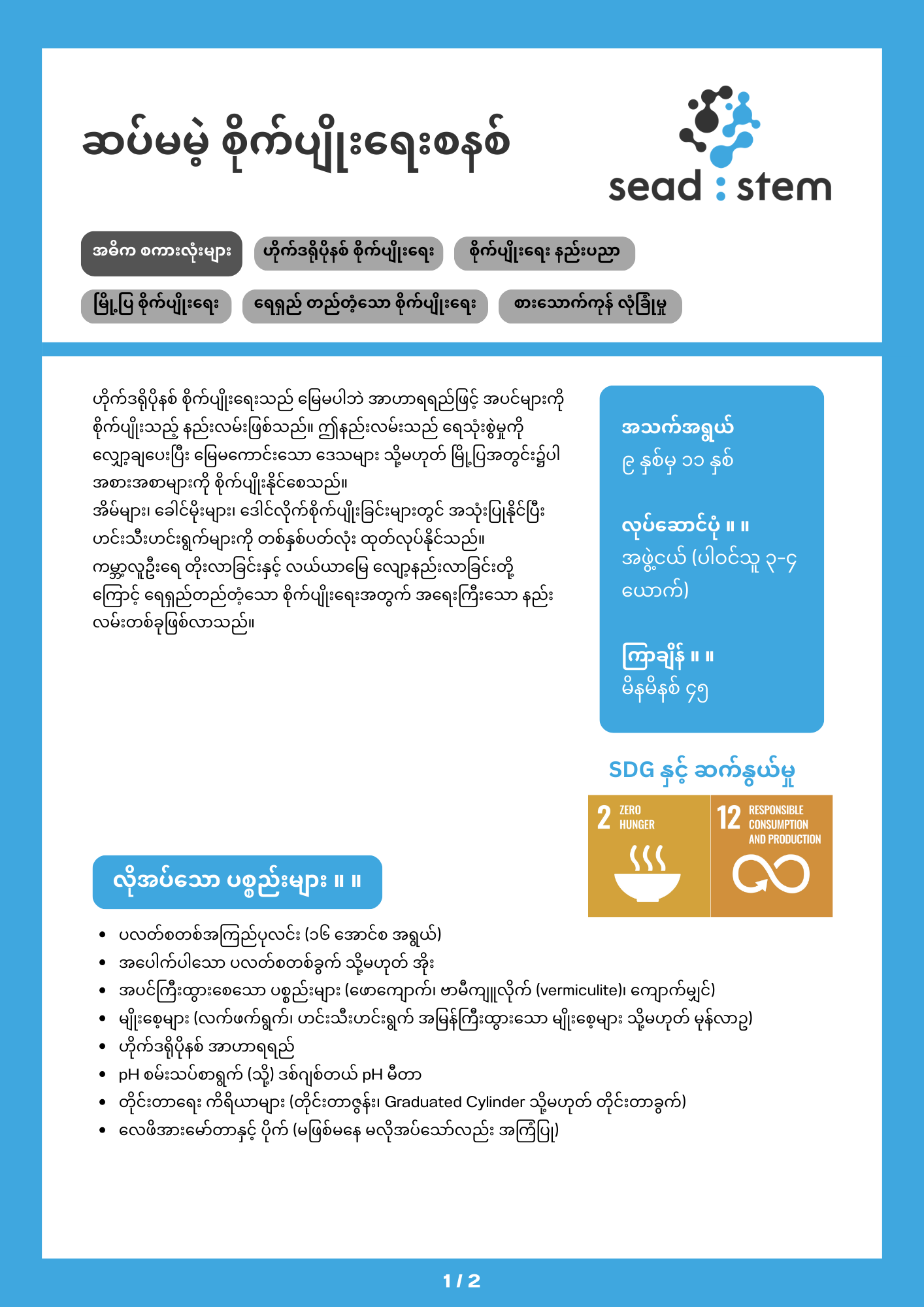 - အာဟာရဓာတ်များ ကြွယ်ဝသည့် ရေဖြေရှင်းချက်များနှင့် အရေးကြီးသော သတ္တုဓာတ်များက အပင်ကြီးထွားမှုနှင့် အစားအစာထုတ်လုပ်မှုကို မည်သို့ ပံ့ပိုးပေးသည်ကို လေ့လာရန်;